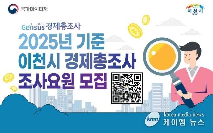 (케이엠뉴스) 이천시는 4월 1일부터 4월 17일까지 ‘2025년 기준 경제총조사’ 조사요원을 모집한다고 밝혔다.