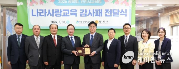 (케이엠뉴스) 인천광역시교육청은 지난 30일, 그동안 추진해 온 ‘역사 바로 알기’ 교육 정책과 독립운동 정신 계승을 위한 다양한 교육활동의 성과를 인정받아 광복회로부터 감사패를 받았다.