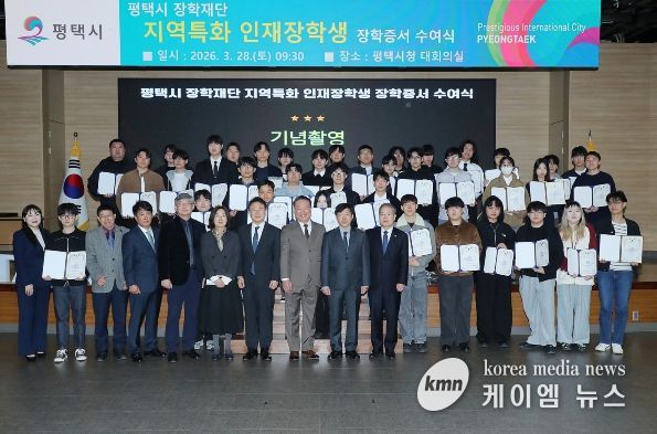 (케이엠뉴스) 평택시 장학재단은 지난 3월 28일 평택시청 대회의실에서 '2026년도 지역특화 인재 장학생 장학증서 수여식'을 개최했다.