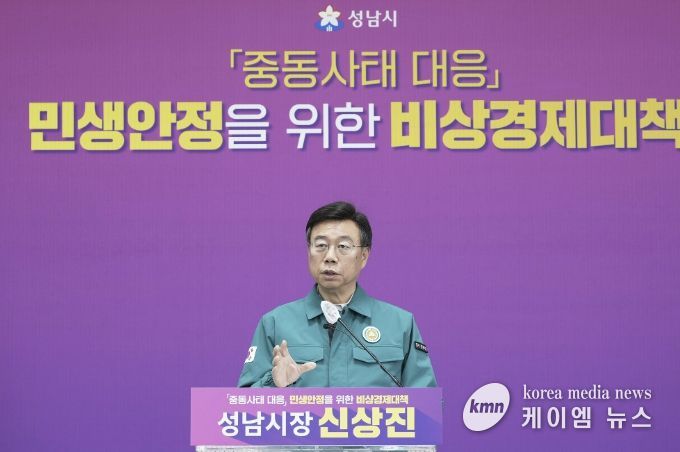 신상진 성남시장은 이날 오전 11시 시청 모란관에서 중동사태 대응 민생안정을 위한 비상경제 대책 기자회견을 열고 “중동 사태로 인한 서민 경제 부담을 완화하고, 지방정부가 앞장서 지원에 나설 수 있도록 중앙정부가 역할을 다해주기를 바란다”며 국가 재난 선포 필요성을 강조했다.