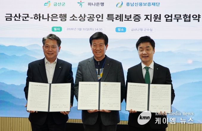 (케이엠뉴스) 충남신용보증재단이 금산군, 하나은행과 손잡고 금산군 소상공인 특례보증의 추가 지원에 나선다.