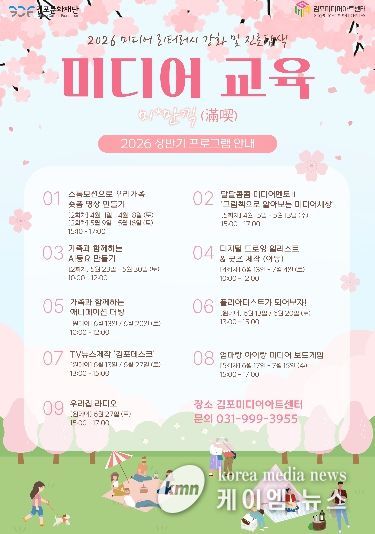 (케이엠뉴스) (재)김포문화재단은 김포미디어아트센터에서 오는 4월부터 11월까지‘미디어 리터러시 강화 및 진로탐색 프로그램’을 본격 추진한다고 밝혔다. 이번 사업은 디지털 환경 변화에 대응하여 시민의 미디어 이해 및 활용 역량을 체계적으로 강화하고, 창의적 미래 인재 양성을 위한 교육 기반을 구축하는 데 목적이 있다.
