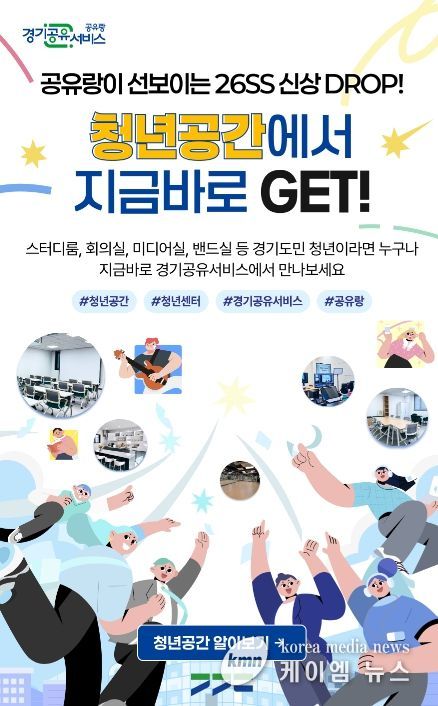 (케이엠뉴스) 경기도 내 공공시설과 공공 자원을 온라인으로 예약할 수 있는 경기도 통합예약 시스템 ‘경기공유서비스’가 시군 청년센터 공간을 한 곳에서 신청할 수 있는 ‘청년공간’ 예약서비스를 1일부터 제공한다.