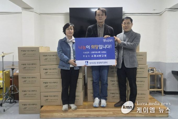 (케이엠뉴스) 수원시 장안구 정자2동은 지난 31일, 수원서부교회에서 부활절을 맞아 지역 내 소외된 이웃들에게 따뜻한 사랑을 전하고자 정자2동 및 송죽동에 식료품 박스 40박스를 각각 기부했다고 밝혔다.