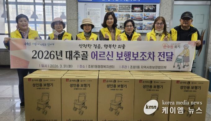 (케이엠뉴스) 수원시 장안구 조원1동 지역사회보장협의체는 지난 31일, 관내 거동이 불편한 취약계층 어르신 10명을 대상으로 “2026년 대추골 어르신 보행보조차 지원”사업을 추진했다.