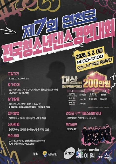 (케이엠뉴스) (재)연천군청소년육성재단(청소년문화의집)은 지난 26일, 2026년 연천 구석기 축제와 연계하는 '제7회 연천군 전국 청소년댄스 경연대회'에 문화체육관광부 장관상과 경기도지사상을 확보하며 전국 최고의 청소년댄스 무대로 도약한다고 밝혔다.
