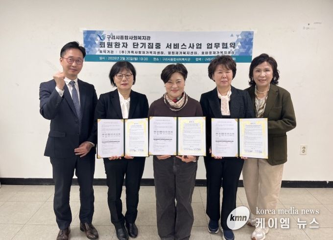 (케이엠뉴스) 구리시종합사회복지관은 3월 30일 구리시장기요양기관협회와의 협력을 바탕으로 ㈜가족사랑재가복지센터, 엘림재가복지센터, 효마중재가복지센터 등 3개 기관과 ‘퇴원 환자 단기 집중 서비스’ 업무협약을 체결했다.