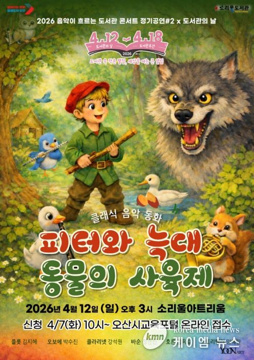 (케이엠뉴스) 오산시 소리울도서관은 오는 4월 12일 오후 3시 소리울아트리움에서 ‘2026 도서관의 날’을 기념해 온 가족이 클래식의 매력을 즐길 수 있는 '음악이 흐르는 도서관 콘서트'를 개최한다.