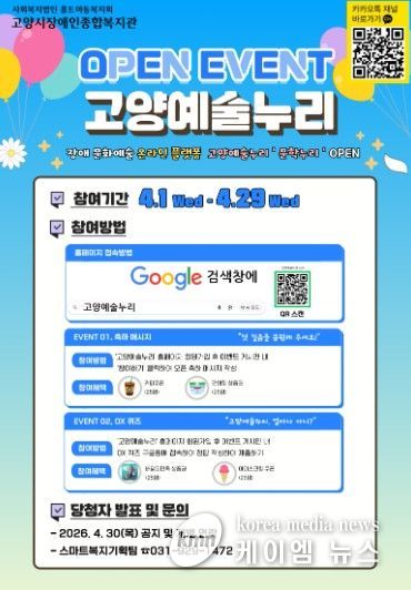 (케이엠뉴스) 고양시장애인종합복지관은 장애예술인의 창작활동을 지원하고 문화예술 향유 기회를 확대하기 위해 온라인 문화예술 플랫폼 ‘고양예술누리’를 지난 4월 1일 정식 오픈했다.