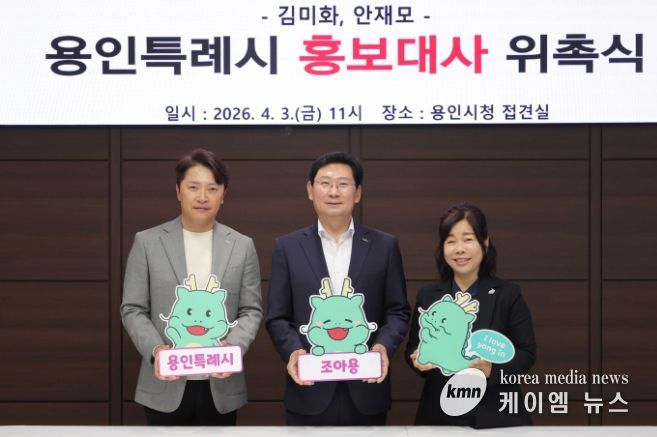 (케이엠뉴스) 용인특례시는 3일 용인 시민인 방송인 김미화씨와 배우 안재모씨를 홍보대사로 위촉했다.