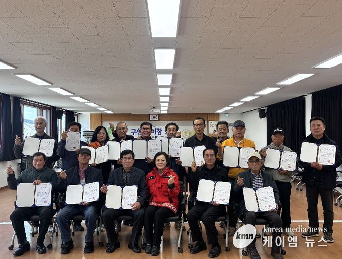 이날 회의에는 구항면장을 비롯해 각 마을 이장들이 참석한 가운데, 봄철 주요 현안과 군정 홍보 사항을 공유하고, 각 마을 이장을 명예사회복지공무원으로 위촉하는 시간을 가졌다.