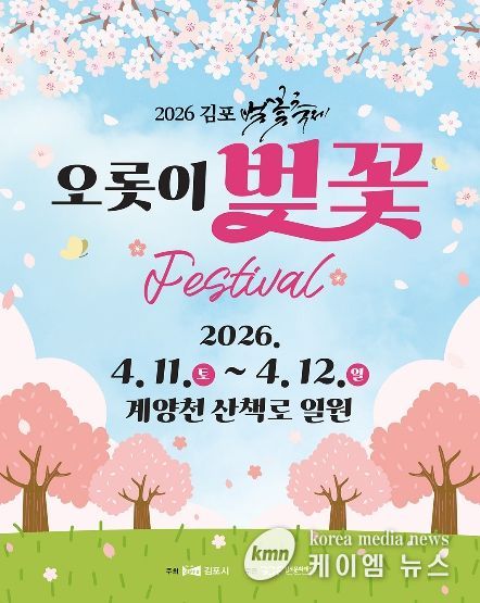 (케이엠뉴스) (재)김포문화재단은 오는 4월 11일부터 12일까지 이틀간 계양천 산책로 일원에서 '2026 김포 벚꽃축제 '오롯이 벚꽃''을 개최한다고 밝혔다.