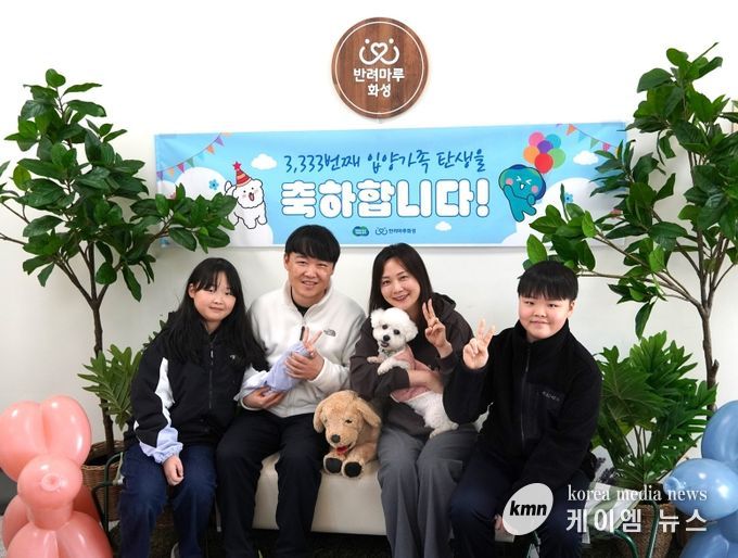(케이엠뉴스) 경기 서부권을 대표하는 반려동물 테마파크 ‘반려마루 화성’에서 3,333번째 입양가족이 탄생했다. 2013년 ‘경기도 도우미견나눔센터’로 처음 문을 연 이후 13년 만에 거둔 성과로 ‘반려마루 화성’은 그동안 유기견 3,068마리, 유기묘 265마리를 입양시켰다.