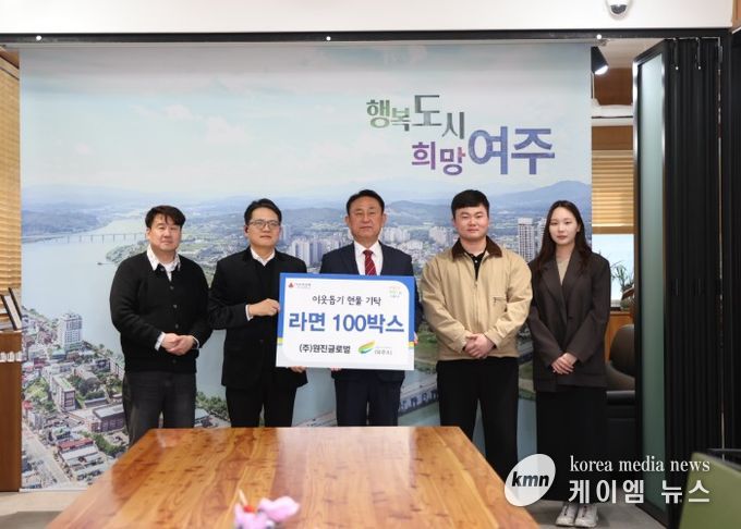 (케이엠뉴스) 지난 8일 강진수 ㈜원진글로벌 대표 및 관계자는 여주시청을 방문하여 이웃돕기 라면 100박스를 기탁했다.