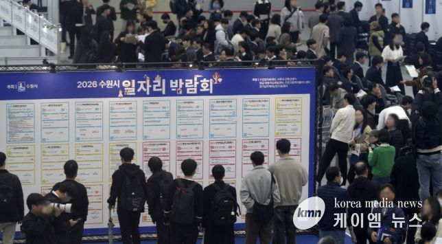 (케이엠뉴스) 수원특례시가 9일 수원컨벤션센터 전시홀에서 개최한 ‘2026 수원시 일자리박람회’에 2028명이 찾았다.