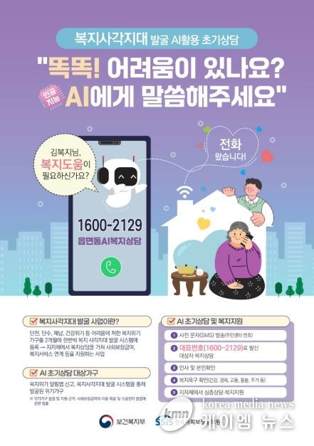 발굴된 대상자는 읍·면·동 인공지능(AI) 복지 상담(☏1600-2129) 전화를 통해 1차 상담을 진행한다. 심층 상담이 필요하다고 판단되는 경우 즉시 현장을 방문해 2차 상담을 이어간다. 이후 위기 상황에 따라 긴급 복지 지원, 기초생활보장제도 등 공적 자원을 우선 연결하고, 지원 후에도 위기가 해소되지 않는 가구는 민간 자원과 연계해 촘촘한 복지 서비스를 제공할 방침이다.