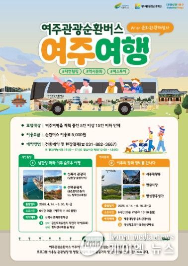 (케이엠뉴스) 여주세종문화관광재단은 관광순환버스와 문화관광해설을 결합한 ‘여주관광순환버스 여주여행 with 문화관광해설사’프로그램을 시범 운영한다고 밝혔다.