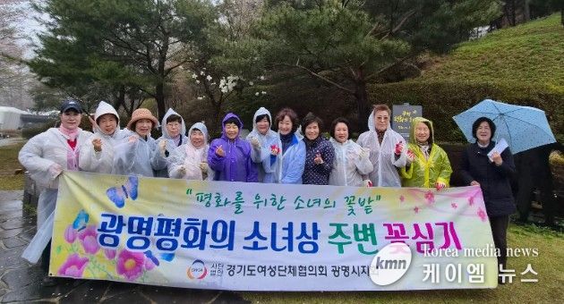(케이엠뉴스) 광명시 여성단체협의회는 10일 광명동굴 입구에 설치된 평화의 소녀상 주변에 봄꽃 300그루를 심는 행사를 개최했다.