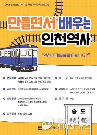 (케이엠뉴스) 인천광역시 시립박물관 분관 인천도시역사관은 수인선 협궤열차를 주제로 한 주말 가족 교육프로그램 '만들면서 배우는 인천역사'를 운영한다고 밝혔다.