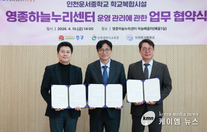 (케이엠뉴스) 인천광역시교육청은 인천중구청과 지난 10일 영종국제도시 내 최초 학교복합시설인 ‘영종하늘누리센터’의 시설 운영·관리에 관한 실시협약을 체결하고 상호 협력하기로 했다.
