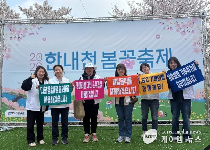 시는 지난 11일 ‘2026 한내천 봄꽃축제’에서 1.5℃ 기후의병 20명이 참여한 가운데 ‘2026 탄소중립 실천 모니터링’을 실시했다.