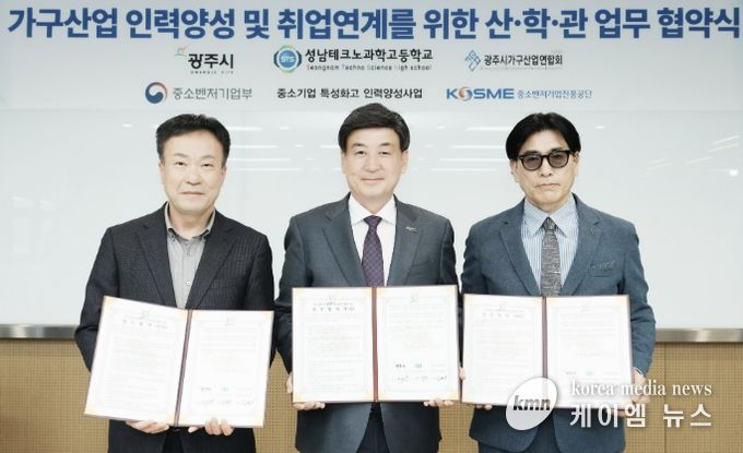 (케이엠뉴스) 광주시는 지난 13일 초월읍 숯골길 56에 위치한 광주시 가구소공인센터에서 (사)광주시가구산업연합회, 성남테크노과학고등학교와 가구산업 인력 양성 및 취업 연계를 위한 산·관·학 업무협약을 체결했다.