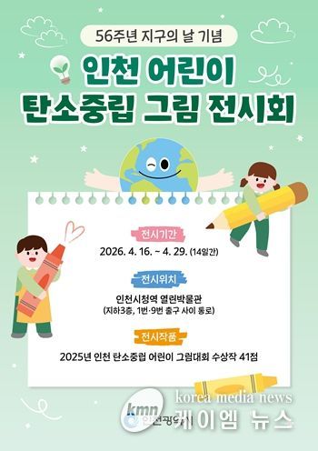 (케이엠뉴스) 인천광역시 시립박물관은 4월 16일부터 30일까지 인천지하철 1호선 인천시청역 내 ‘열린박물관’에서 '제56회 지구의 날 기념 인천어린이 탄소중립 그림 전시회'를 개최한다고 밝혔다.