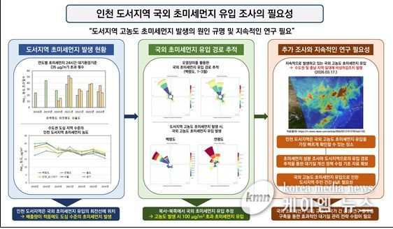 (케이엠뉴스) 인천연구원은 기획연구과제로 수행한 “인천 도서지역 국외 초미세먼지 유입 특성 조사” 결과보고서를 발표했다.