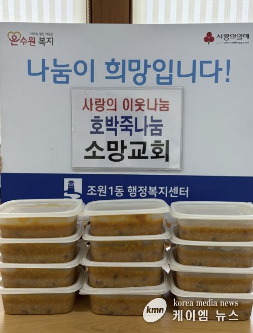 (케이엠뉴스) 수원시 장안구 조원1동 지역사회보장협의체와 2025년 7월 업무협약을 맺은 소망교회가 지난 14일, 조원1동 관내 취약계층 20명을 위해 호박죽을 지원했다.