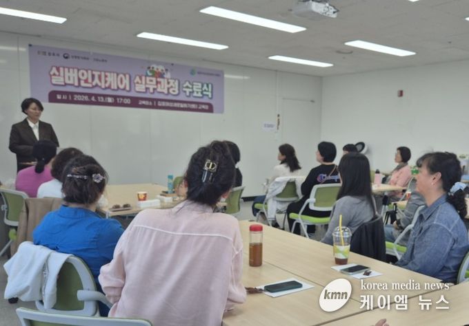 (케이엠뉴스) 김포시는 지난 13일 김포여성새로일하기센터에서 교육 강사와 훈련생 등 20여 명이 참석한 가운데 '실버인지케어 실무과정' 수료식을 개최했다.