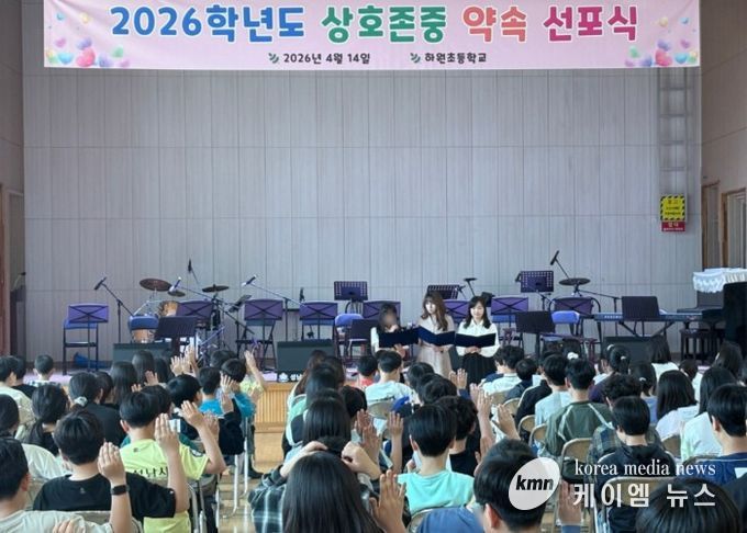 (케이엠뉴스) 성남 하원초등학교 강당에서 4월 14일 학생·학부모·교직원이 함께하는 ‘2026 상호존중 약속 선포식’을 개최했다. 이번 행사는 지역거점형 상호존중 학교문화 조성 자율운영교로 선정된 하원초등학교가 교육공동체가 함께 정한 약속을 바탕으로 상호존중의 가치를 공유하고, 교육공동체의 권리와 책임이 조화를 이루는 학교문화를 확산하기 위해 마련됐다.