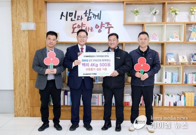 (케이엠뉴스) 양주시가 지난 14일 시장실에서 ㈜북부종합상사 타이어프로로부터 이웃돕기 성품으로 백미 4kg 500포(800만 원 상당)를 기탁받았다.