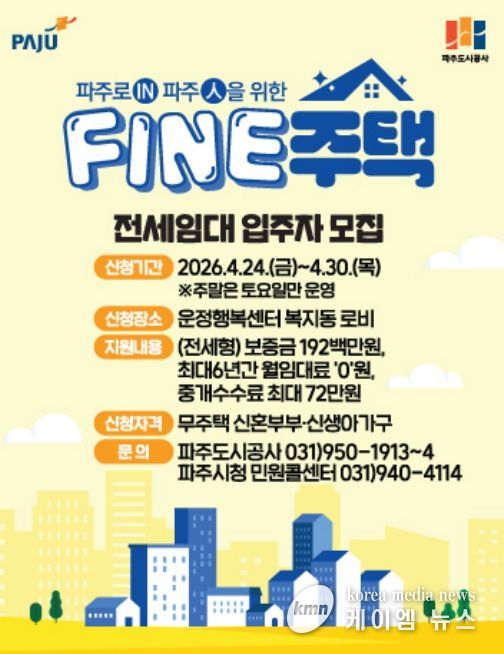 신청은 4월 24일부터 30일까지 운정행복센터 복지동(와석순환로 415)에서 방문 접수로 진행되며, 자세한 사항은 파주도시공사 및 파주시 누리집, 마이홈포털에서 확인할 수 있다.