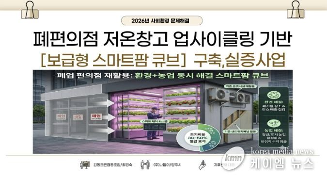 선정된 사업은 ‘폐편의점 저온창고 업사이클링 기반 보급형 스마트팜 큐브 구축·실증사업’이다. 폐기되는 냉장·공조설비를 재활용해 스마트팜 구축비용을 30~50% 절감하고, 이를 스마트팜 인프라로 전환하는 순환경제 모델로 사업비 3천만 원을 지원받게 된다.