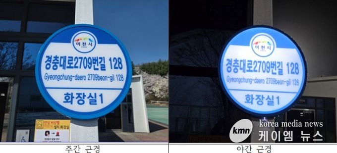 (케이엠뉴스) 이천시는 시민들의 도로명주소 사용 편의를 높이고 안전한 야간 보행 환경을 조성하기 위해 관내 주요 공원과 하천 산책로 내 공중화장실 12개소에 조명형(LED) 건물번호판을 설치했다고 13일 밝혔다.