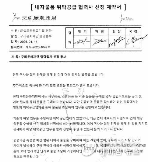 재단은 ‘내자물품 위탁공급 협력사 선정 계약서’ 등 실제 공문과 유사한 형식의 문서를 활용해 협력업체 선정을 통보하고, 물품 대리구매 등을 유도하는 사례가 확인됐다고 밝혔다.