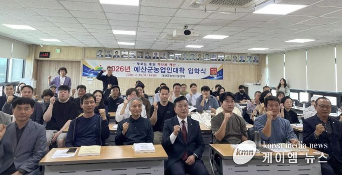 (케이엠뉴스) 예산군농업기술센터는 지난 15일 농업기술센터 세미나실에서 입학생 38명이 참석한 가운데 ‘2026년 예산군농업인대학 스마트팜학과’ 입학식을 개최했다고 밝혔다.
