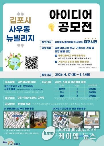 (케이엠뉴스) 김포시가 사우동 뉴빌리지 사업의 일환으로 원도심에 새로운 활력을 불어넣기 위해 ‘2026 사우동 뉴빌리지 시민 아이디어 공모전’을 개최한다고 밝혔다.