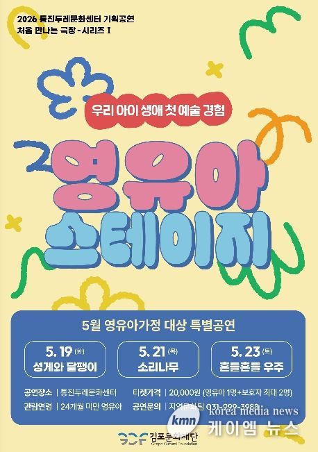 (케이엠뉴스) 김포문화재단은 오는 5월 가정의 달을 맞아 통진두레문화센터 특별 기획으로 24개월 미만 영유아를 위한 체험형 공연 시리즈 '처음 만나는 극장 - 영유아 스테이지'를 선보인다.