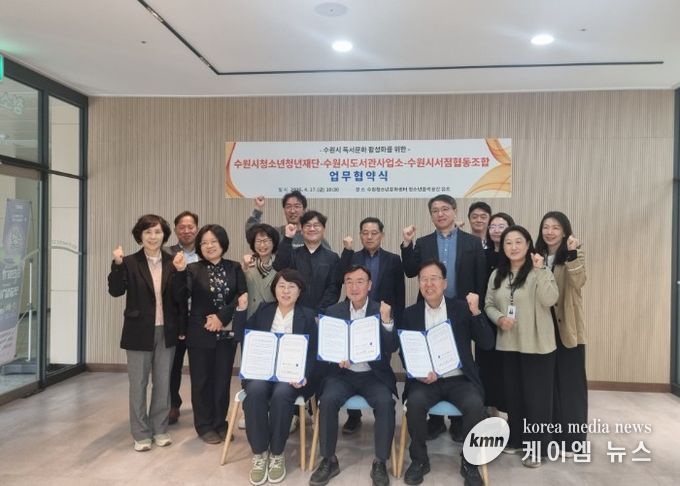(케이엠뉴스) 수원시 도서관사업소와 수원시청소년청년재단, 수원시서점협동조합이 지역 독서문화 활성화와 시민 독서활동 증진을 위해 협력하기로 했다.