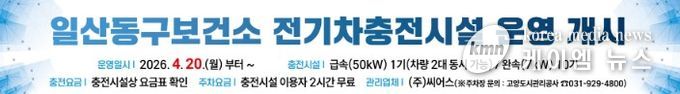(케이엠뉴스) 고양특례시 일산동구보건소가 오는 20일부터 전기차충전시설 운영을 본격적으로 시작한다.