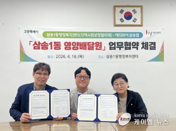 (케이엠뉴스) 고양특례시 삼송1동은 지난 16일 취약계층의 건강과 안부를 동시에 살피는 ‘영양배달원’사업 추진을 위해 지역사회보장협의체와 ㈜에치와이 고양 삼송지점이 업무협약을 체결했다.