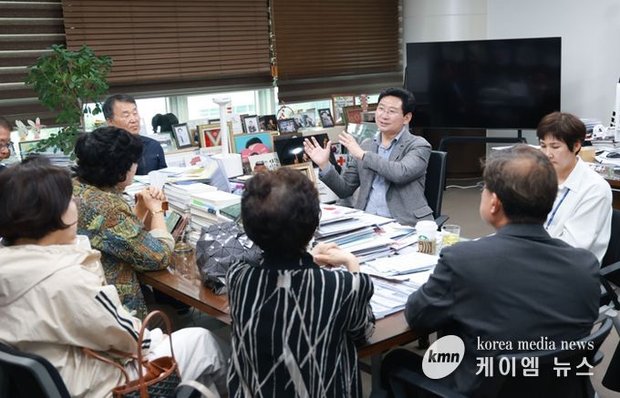 이 시장은 이날 시장실을 찾은 성동마을LG빌리지1차아파트 입주자대표회의 구자훈 회장 등 주민 9명과 대화했다.