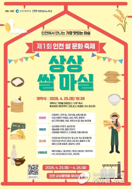 (케이엠뉴스) 인천테크노파크(인천TP)는 오는 25일부터 26일까지 양일간 인천 중구 상상플랫폼에서 인천의 맛과 문화를 담은 ‘제1회 인천 쌀 문화축제(상상 쌀 마실)’를 본격 개막한다.