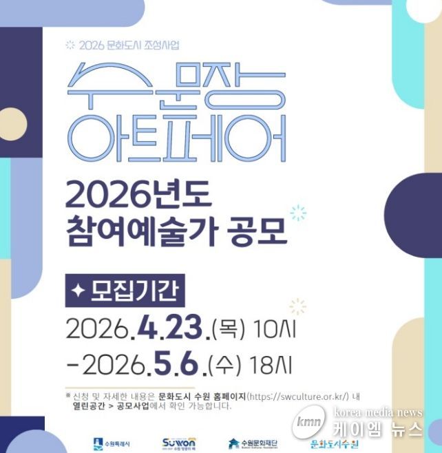 (케이엠뉴스) 수원문화재단은 지역 예술가의 작품 판로 확대와 지속가능한 창작 활동 기반 마련을 위해 2026년 ‘수문장 아트페어’ 참여 예술가를 모집한다.