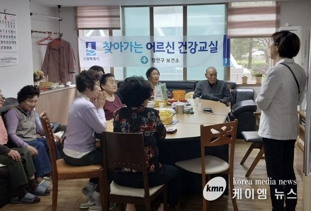 (케이엠뉴스) 수원시 장안구 송죽동은 지난 17일, 관내 로얄팰리스 경로당에서 '찾아가는 어르신 건강교실' 프로그램을 운영했다.