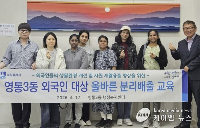 한편, 영통3동 행정복지센터는 관내 수원출입국외국인청을 방문해 ‘찾아가는 외국인 분리배출 교육’을 실시할 계획이다.