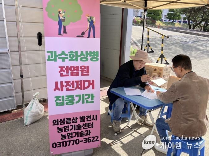 이에 군은 개화기 사용 등록 약제를 활용한 단계적 방제 체계를 바탕으로 재배 농가에 약제를 공급하고, 시기에 맞춘 적기 살포를 안내하고 있다. 이번 조치는 개화기 감염원을 사전에 차단하고 안정적인 과원 관리를 지원하기 위해 추진됐다.