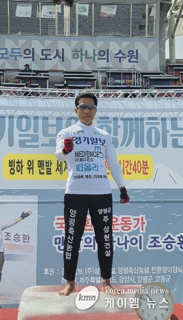 (케이엠뉴스) 양평군은 지난 19일 경기도 수원종합운동장에서 양평군 홍보대사이자 국제 환경운동가로 활동 중인 ‘맨발의 사나이’ 조승환 씨가 인간의 한계를 넘어서는 기록을 세웠다고 밝혔다.