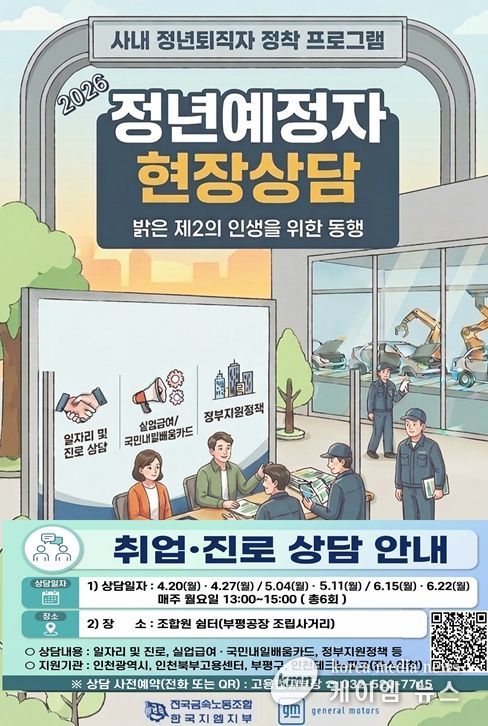 한국지엠 부평공장은 올해 정년에 도달하는 1966년생을 시작으로 오는 2032년까지 약 1,750여 명의 근로자가 순차적으로 퇴직할 예정인 만큼, 체계적인 진로 설계와 재취업 지원이 필요한 상황이다.